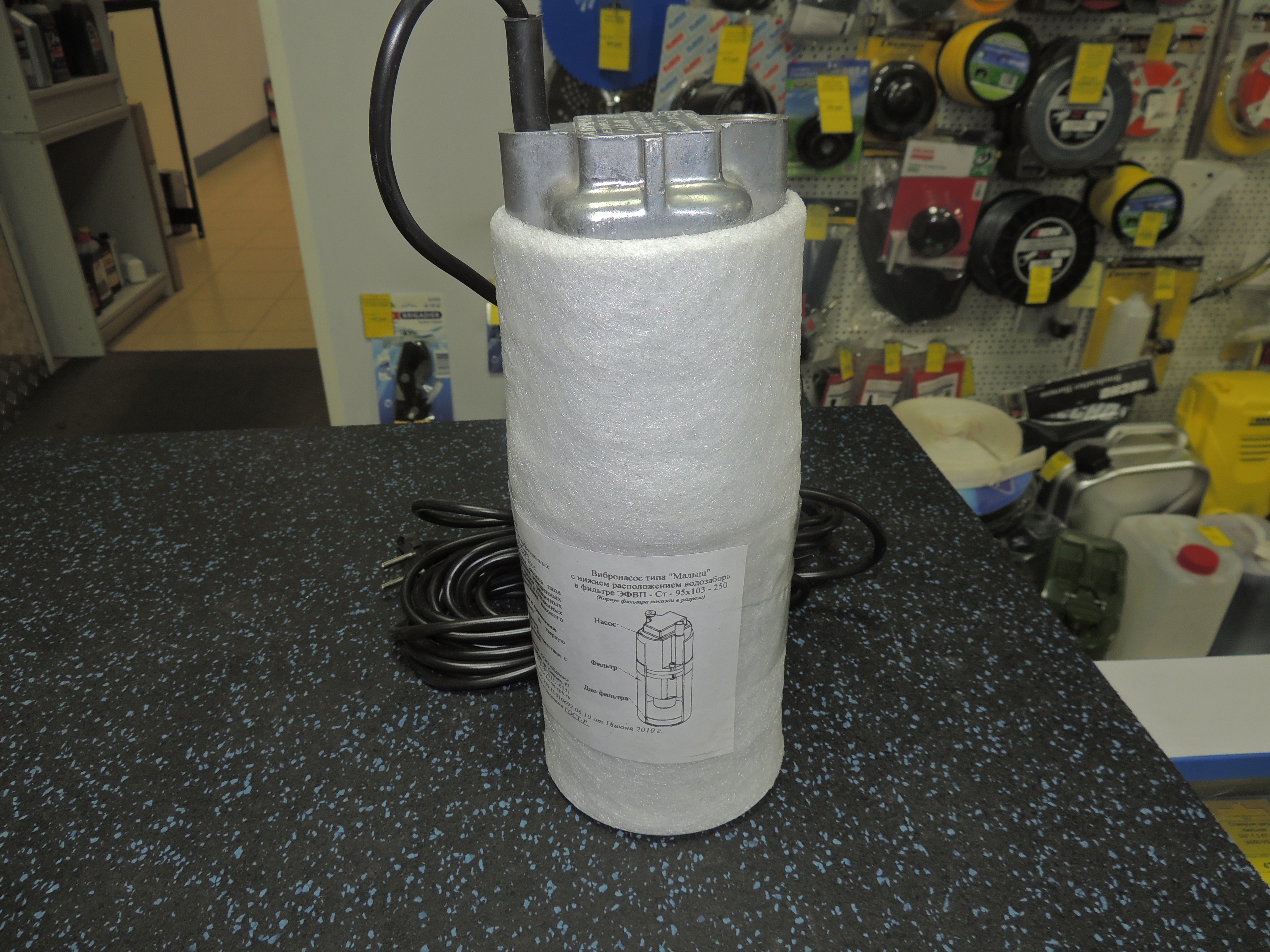Фильтр-амортизатор предназначен для защиты 4-х дюймовых вибрационных насосов с нижним водозабором от повреждений гидравлической части насоса твёрдыми взвешенными частицами размером более 40-100 мкм, попадания внутрь различных загрязнений и защиты насоса от механических повреждений при работе в стесненных условиях.Изготовлено из полиэтилена высокого давления(ПВД) 15803-20 ГОСТ 16337-77.  12997-2003 Горюч!Беречь от огня! Изделие не требует сертификации в системе ГОСТ-Р. Изготовлено в соответствии с ТУ 2291-001-583